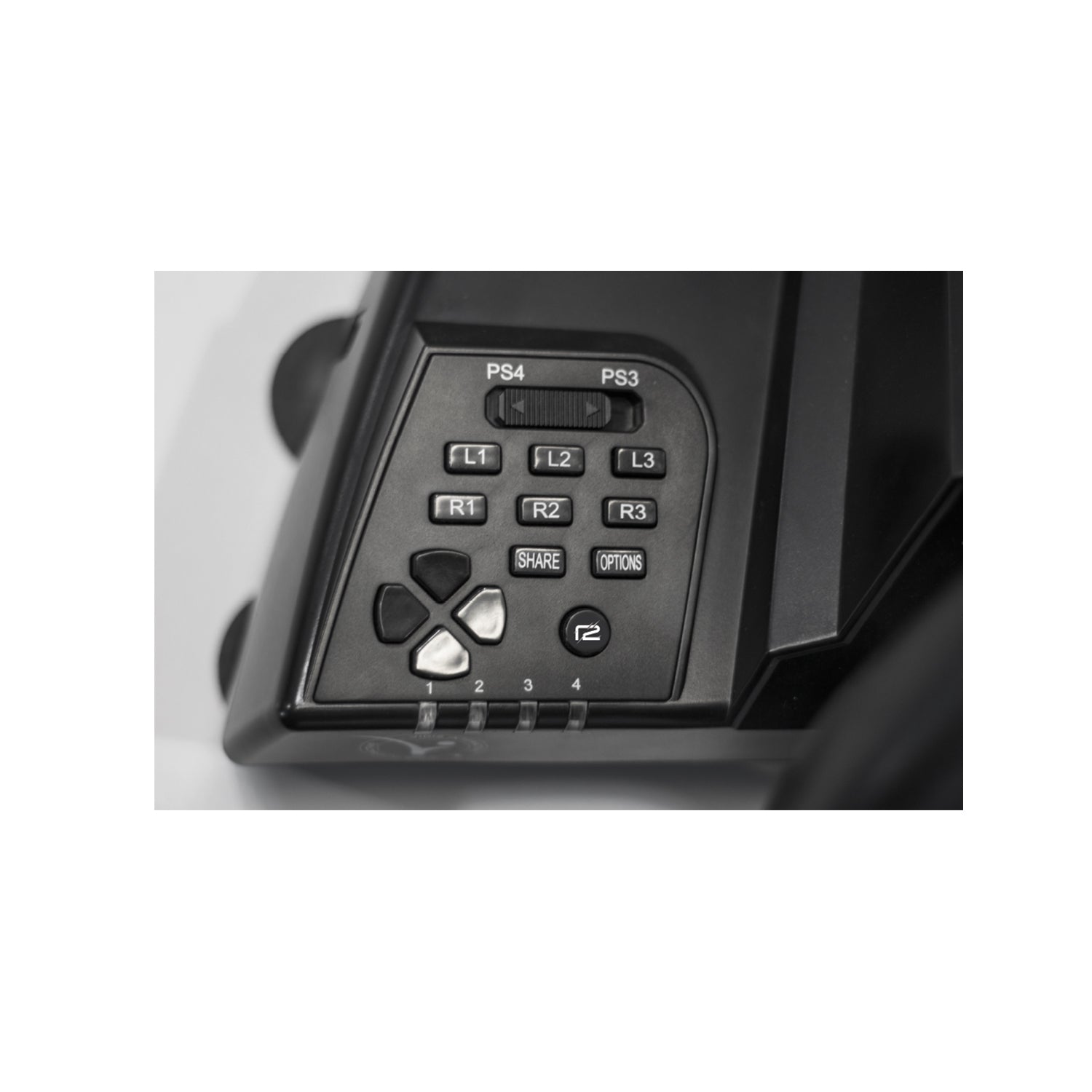 - LED-Anzeige: Zeigt aktiven Modus (Gamepad, Wheel, Advanced Wheel)